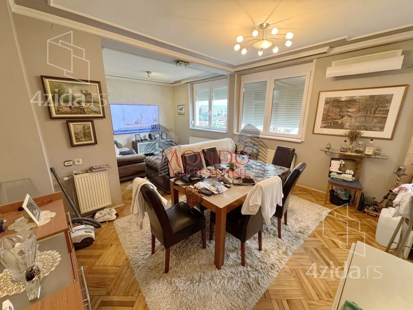 Zamenjana je PVC stolarija, kupatilo je renovirano, na podu je parket.