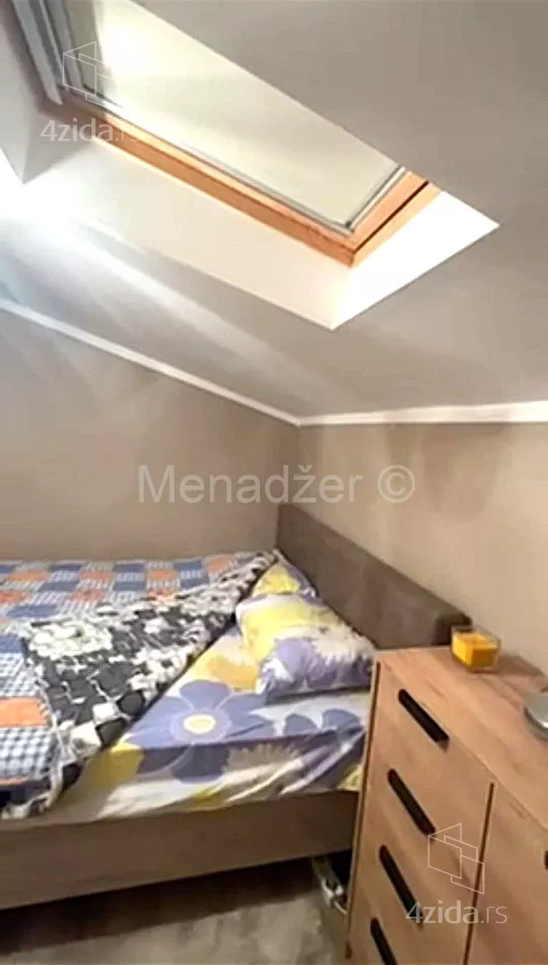 Na prodaju je funkcionalan i svetao stan ukupne površine 46m², sa dodatnih 18m² tavanskog prostora koji je adaptiran u sobu i ostavu, čime je dobijen praktičan i komforan trosoban stan.