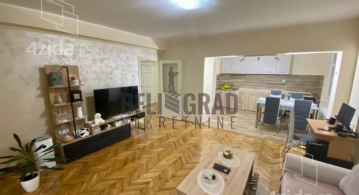 Komforan stan sa dve spavaće sobe. Rađeno renoviranje kupatila i kuhinje, sa novom hidroizolacijom. Parket hoblovan i lakiran. Promenjena spoljna stolarija. Lepa pozicija, u blizini škola, vrtića i svih infrastrukturnih objekata. Uknjižen na 64 kvm. Prostorije: predsoblje, kuhinja, dnevni boravak, dve spavaće sobe, kupatilo, terasa, podrum Agencijska provizija 2%