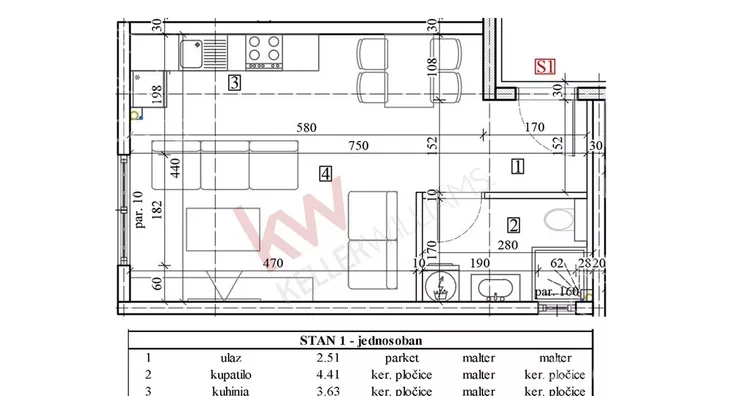 U ponudi je jednosoban stan koji se nalazi na prizemlju. Sastoji se od ulaznog hodnika (2,51 m2), dnevne sobe sa trpezarijom (19,50 m2) kuhinje (3,63 m2), kupatila (4,41 m2). U gradnji se koriste najkvalitetniji materijali i oprema, PVC stolarija sa roletnama...