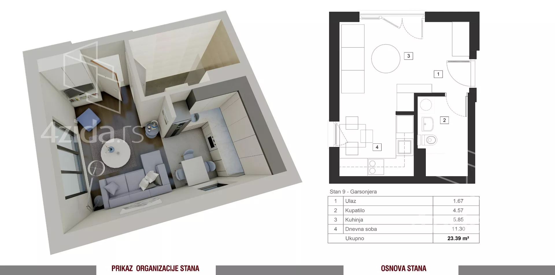 Cena garsonjera iznosi 3.000 EUr po m2+ PDV.