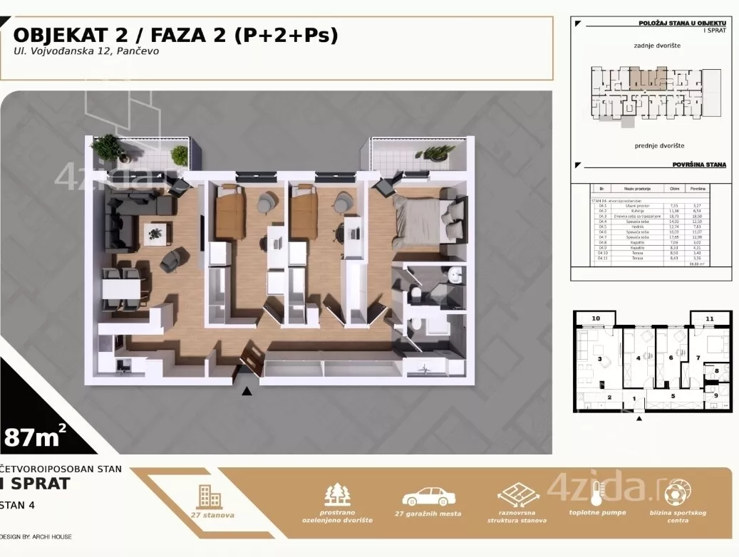 U izgradnji koriste se kvalitetni materijali koji doprinose udobnosti i kvalitetu stanovanja.