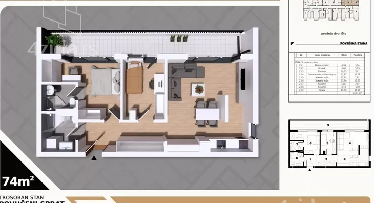 Trosoban stan na prodaju, Vojvođanska 12, 103.600€, 74m²