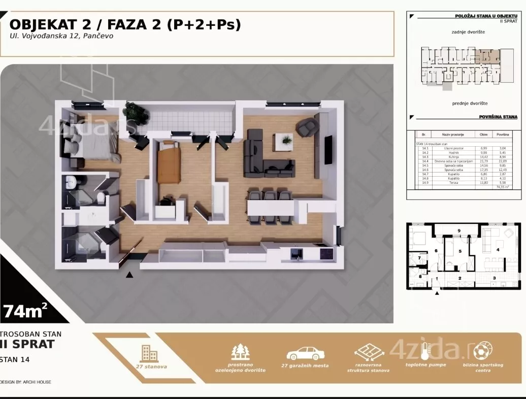 - Cena za avans 100% - 1.540 eur/m² (1.400€ + PDV)