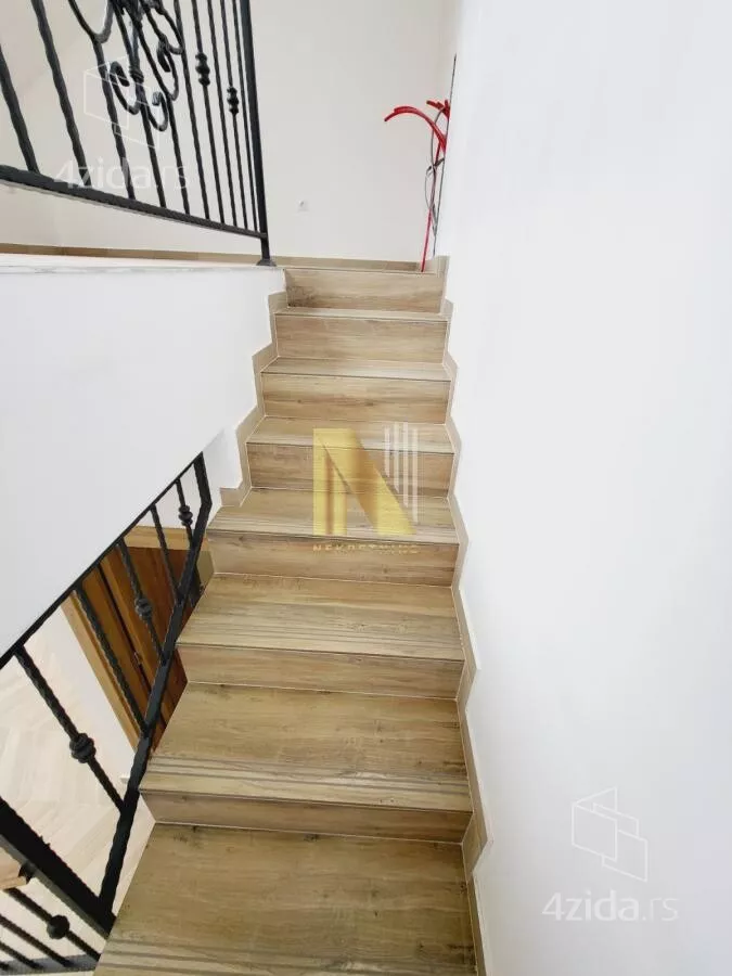 Podna italijanska keramika marke Sherbon slagana na riblju kost, nezavisna inverter klima ( greje na -20,a hladi na +40), roletne na struju, prozori 6 komorni Roloplast, Alu ulazna sigurnosna vrata sa termo prekidom i sigurnosnom bravom, izolacija za krov od 30 cm (kamena vuna) i pokriveno crepom I klase, stepenište obloženo keramičkim oblagama iz jednog komada u boji podova, sobna vrata od medijapan sa italijanskom kvakom i bravom , kao i experience aling-ova elektro galenterija i komplet led rasveta sa ugradjenim led skrivacima.
