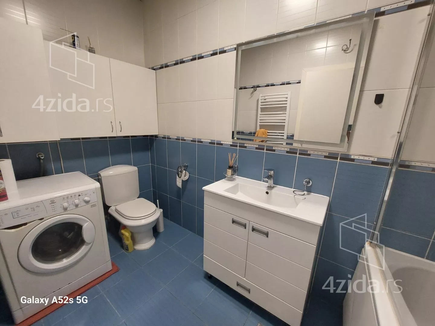 - Opremljenost: Namešteno - TV, klima, veš mašina, kuhinjski elementi, frižider, zamrzivač, šporet, rerna, ležaj, plakar, ugradni plakar, kancelarijski nameštaj