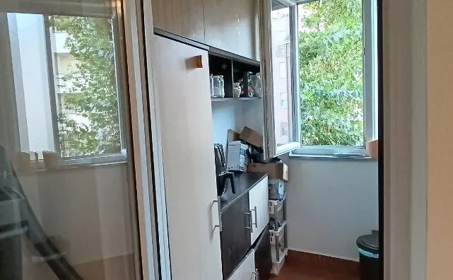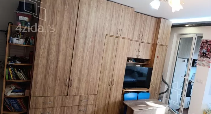 Cipelarnik u ogledalu hodnika ,ormari u kupatilu i sobi od poda do plafona kao i na terasi,kuhinja..to je sve potpuno nov namestaj kojin ostaje u stanu.