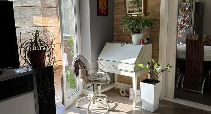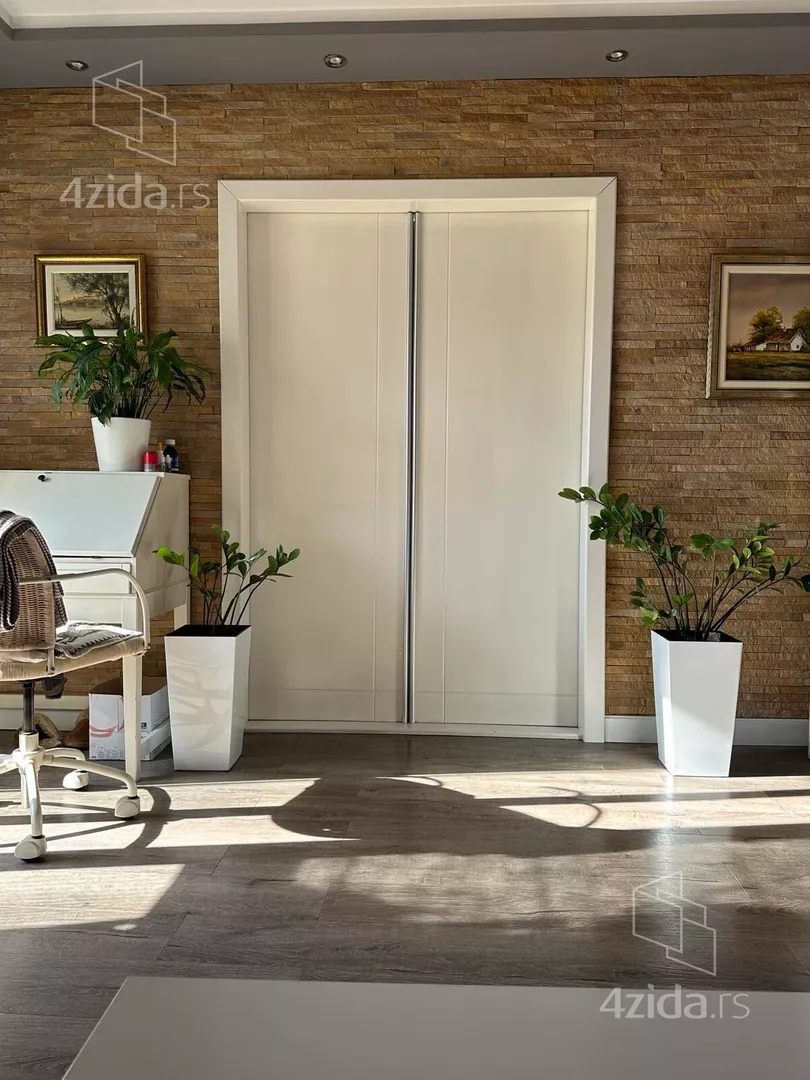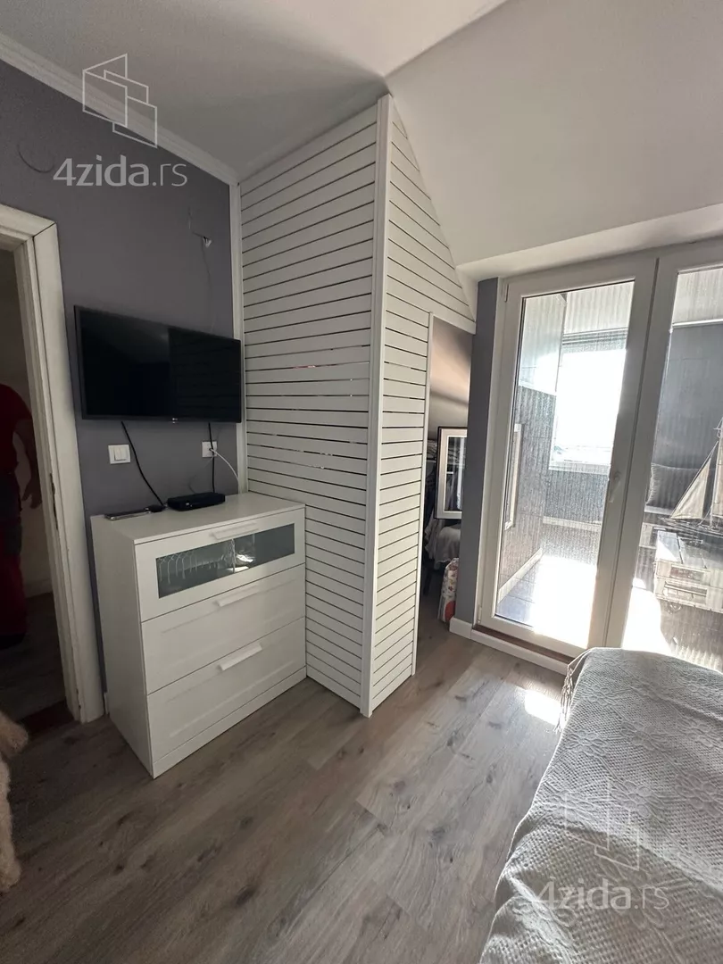 - Opremljenost: Namešteno - internet, TV, klima, veš mašina, kuhinjski elementi, sudo mašina, frižider, zamrzivač, mikrotalasna rerna, šporet, rerna, ležaj, plakar, ugradni plakar, kancelarijski nameštaj