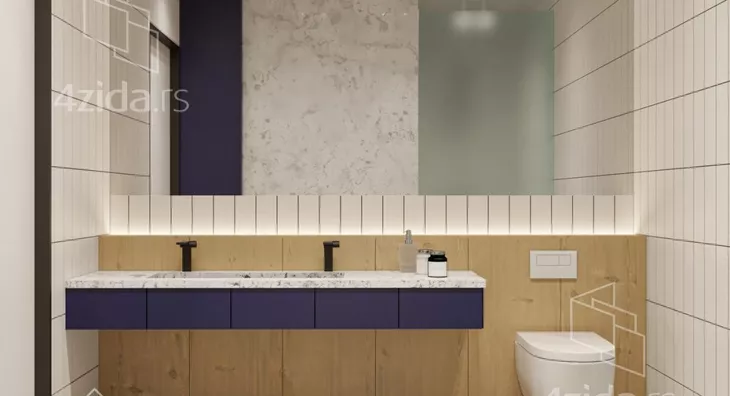-Sigurnosna ulazna metalna vrata sa oplatom od medijapana u boji drveta obostrano "Svetli hrast", kao i unutrasnja, lakirana u beloj boji - Laminat nemackog proizvodjaca Egger, standard sanitarije sa ugradnim vodokotlicem, +-
