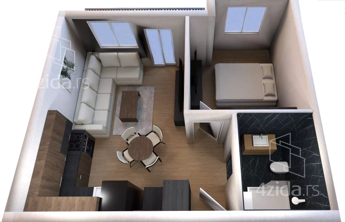 U ponudi je novi stambeni objekat u Novim Banovcima. Projekat raspolaze sa 26 stambenih jedinica, 1 poslovno-ugostiteljskim objektom, 29 garažnih mesta i odvojene 3 garaže sa sopstvenim ulazima. Objekat se gradi iz jedne faze. Stan je sa odvojenom spavaćom sobom i kombinovanom dnevnom sa kuhinjom i trpezarijom., kupatilom i terasom. Orijentacija objekta je istok- zapad.
