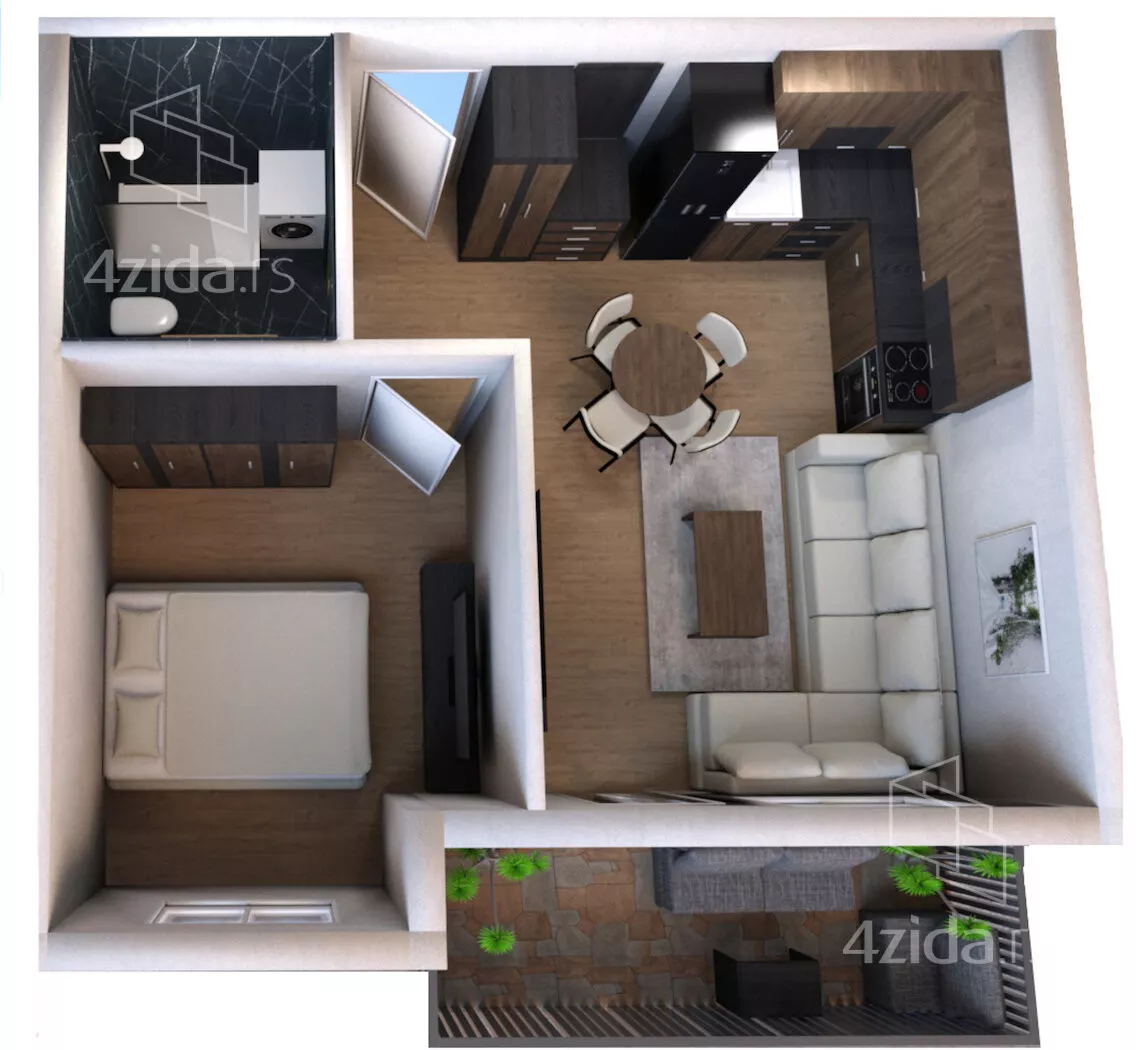 U ponudi je novi stambeni objekat u Novim Banovcima. Projekat raspolaze sa 26 stambenih jedinica, 1 poslovno-ugostiteljskim objektom, 29 garažnih mesta i odvojene 3 garaže sa sopstvenim ulazima. Objekat se gradi iz jedne faze. Stan je sa odvojenom spavaćom sobom i kombinovanom dnevnom sa kuhinjom i trpezarijom., kupatilom i terasom. Orijentacija objekta je istok- zapad.