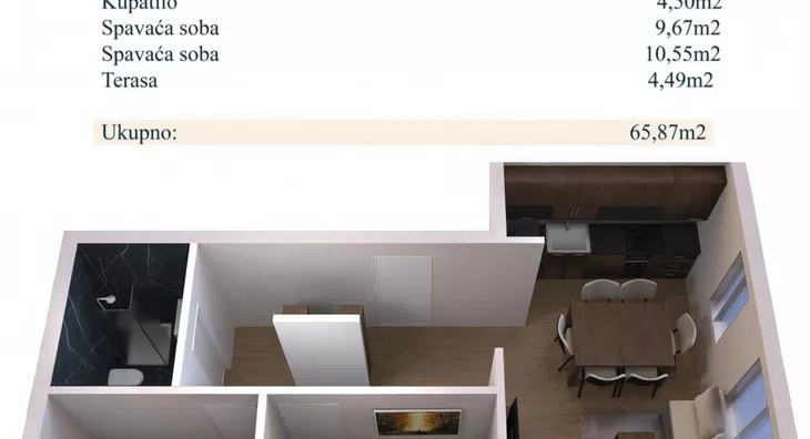 Trosoban stan na prodaju, Novi Banovci, 95.000€, 66m²