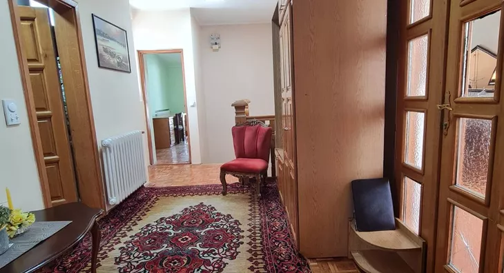 В здании, где находится квартира, рассматривается возможность установки лифта, что дополнительно увеличивает её потенциал. Интерьер квартиры выполнен из высококачественной дубовой столярки и находится в отличном состоянии, что позволяет новым владельцам сразу же заселиться.