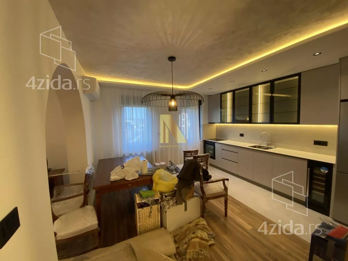 Nova blindirana vrata renomiranog proizvodjaca. Alu stolarija sa tri stakla i posebnom zvučnom izolacijom. Roletne i plisirani komarnici su automatizovani. Novi parket prve klase kao i Italijanska keramika u dva kupatila. Kuhinja je nova i po meri sa novom tehnikom. Smart home wi-fi sistem. Svaka prostorija ima klimu. Idealan raspored, iz hodnika u sve prostorije.
