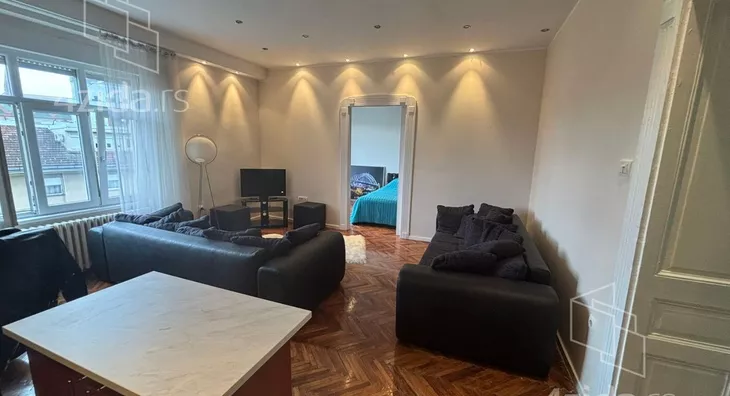 Sastoji se od prostranog dnevnog boravka sa visokim plafonima i dekorativnim detaljima karakterističnim za salonske stanove, dve spavaće sobe, kuhinje sa trpezarijom, kupatila i ostave. Stan je veoma svetao i funkcionalan.