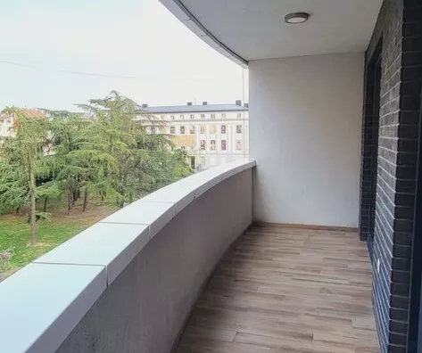 centru blizu pozorišta "PUPINOVA PALATA". Stan je odmah useljiv u zgradi vrhunskog kvaliteta gradnje i opreme. Veliki stakleni portali pridonose fantastičnoj osvetljenosti, Dnevna boravak, dve komforne spavaće sobe, kupatilo . Treći sprat, lift, terasa. Grejanje na gas. Garažno parking mesto se može naknadno kupiti.