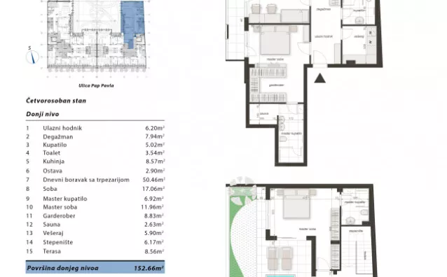 Penthaus stanovi sa privatnim krovnim terasama su projektovani sa zasebnim noćnim i dnevnim zonama boravka, ali i zonama za druženje i opuštanje. Ovakav koncept nudi svu privatnost, komfor i osećaj doma koji donosi život u kući.