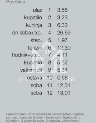 Centar grada, 95.07m2, trosoban stan- duplex, plus 2 terase na krovu koje su gratis od 39m2 i 12m2. Moguća kupovina garažnog mesta i ostave. Ova nekretnina je ulično orijentisana i nalazi se na četvrtom spratu zgrade. Ova fantastična nekretnina, nalazi se u neposrednoj blizini: Pravoslavne crkve, Srpsko narodnog pozorišta i Pozorišta Mladih, Zmaj Jovine ulice, Dunavskog parka, Beogradskog keja, Sinagoge, bioskopa, Futoške pijace, uopšte bulevara oslobođenja. Stan će biti opremljen najkvalitetnijim završnim materijalima na trenutnom tržištu. Stil i komfor, premijum kvaliteta na jednom mestu. Samo kod nas, kupovina bez posredničke naknade direktno od investitora. Cene su sa PDV-om, ukoliko je ovo vaša prva nekretnina imate prava na povrat istog. Odlična investicija kako za život tako i za rentiranje. Planirani rok za završetak radova je 31. Mart 2026. Neki od stanova možda nisu oglašeni na sajtu, s'toga budite slobodni i kontaktirajte nas.