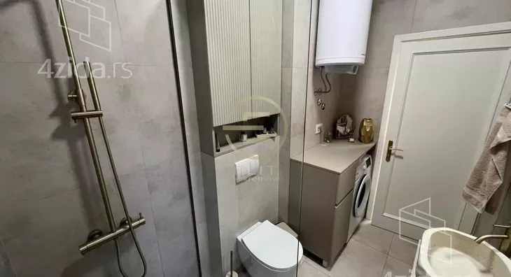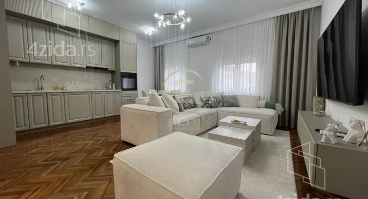 - Opremljenost: Namešteno - interfon, TV, klima, veš mašina, sudo mašina, frižider, rerna, ležaj, plakar, kanalizacija