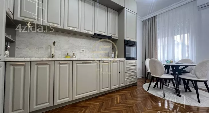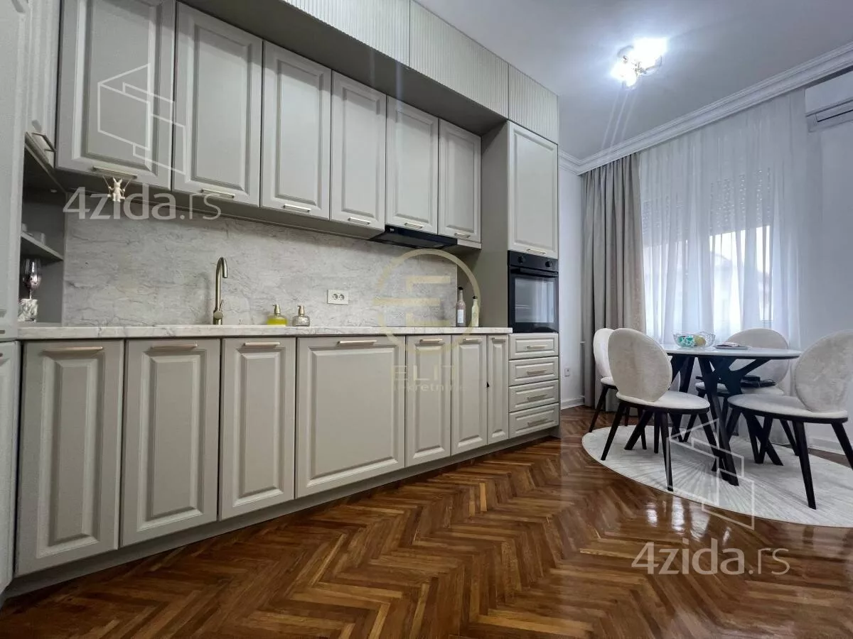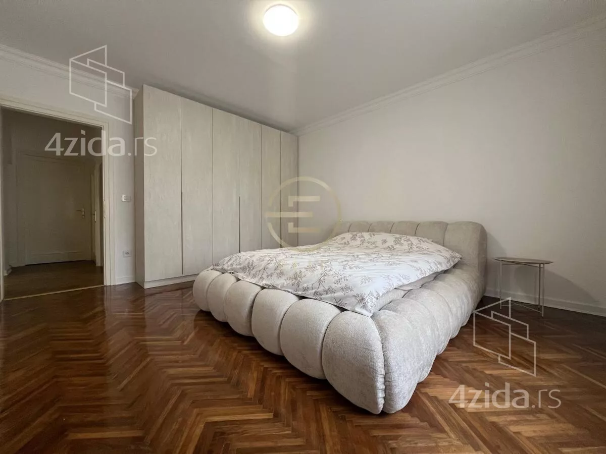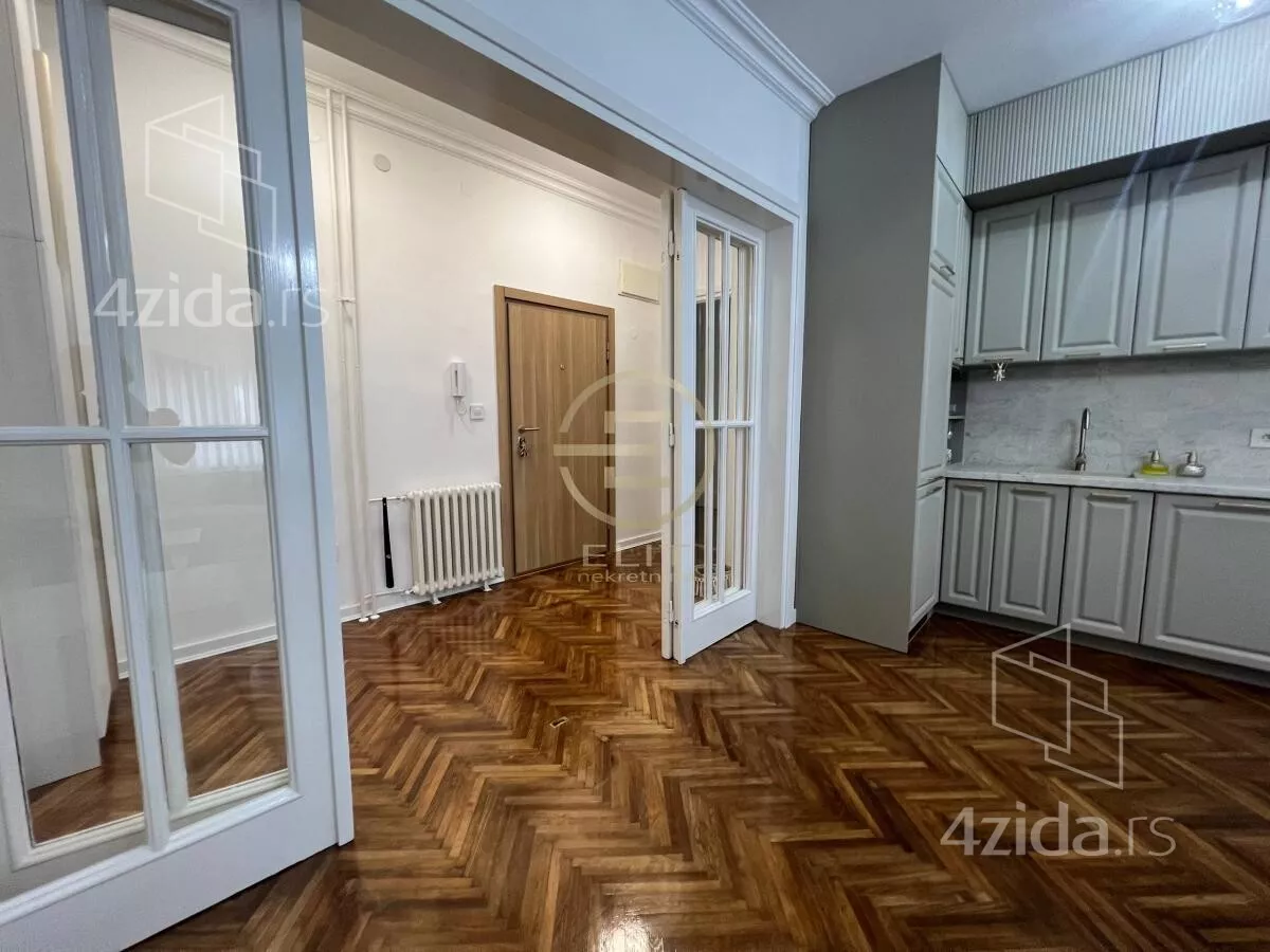 Dvostrano orijentisan, sa visinom plafona od 3.05 metara, ovaj salonac odiše toplinom i karakterom starogradnje uz sve pogodnosti savremeno renoviranog prostora. Podovi su od parketa, hoblovani i prelakirani, što dodatno doprinosi prijatnom ambijentu i osećaju trajne vrednosti.