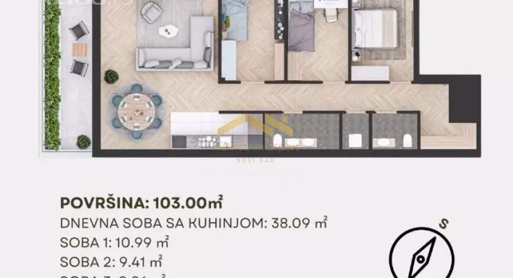 Četvorosoban stan na prodaju, Novo Naselje, 329.350€, 103m²