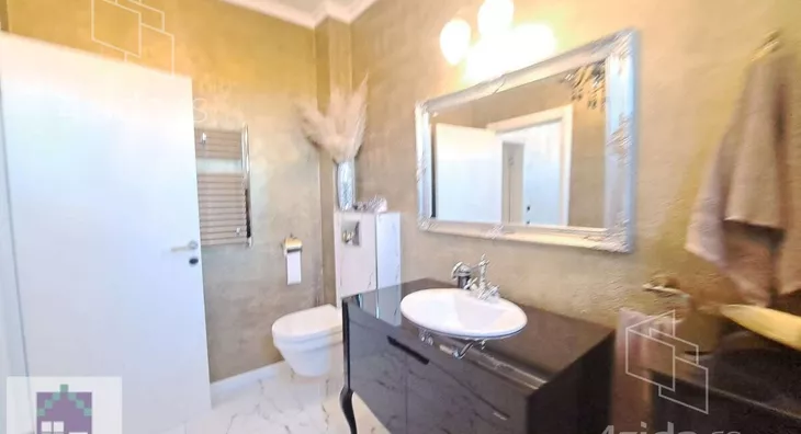 - Opremljenost: Namešteno - internet, interfon, TV, klima, veš mašina, sudo mašina, frižider, rerna, ležaj, plakar, kanalizacija