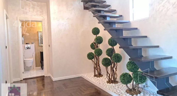 Sastoji se iz dve etaže, od kojih je donja površine 117 m2 na kojoj se nalazi ulazni hodnik , prostrana dnevna soba sa izlazom na terasu , kuhinja sa trpezarijom, dve spavaće sobe , kupatilo i toalet.