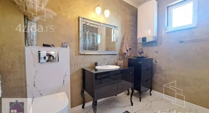 Podovi su obloženi kvalitetnim parketom , kupatilo i toalet opremljeni najkvalitetnijom galanterijom. Kuhinjski elementi i tehnika gotovo nekorišćeni.