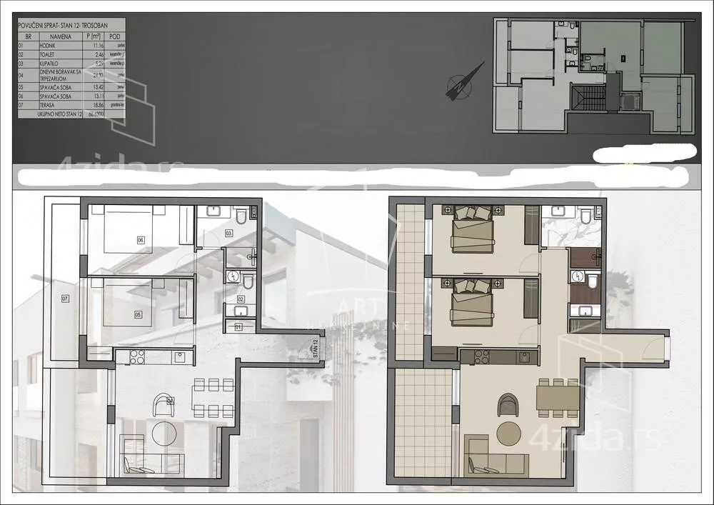 Trosoban stan na prodaju, Vojvode Blažete, 310.205€, 88m²