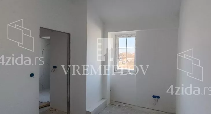 Dvoetažni stan ukupne korisne površine 50,33 m2.Uknjižen.U nivou prizemlja neto površine 27,43 m2 u nivou potkrovlja neto površine 22,90m2.Tarket podovi.Stanu pripada deo dvorišta(terasa) površine 25 m2 sa ostavom od 4 m2 i parking mesto. Novogradnja u naselju Ovča u glavnoj ulici,blizina autobuske stanice autobusa 105 i 105L,blizina škole,vrtića,doma zdravlja,igrališta,prodavnica i nove saobraćajnice koja spaja Nbg Zemun (Pupinov most) sa centrom Beograda preko Pančevačkog mosta.Mogućnost realizacije stambenog kredita.