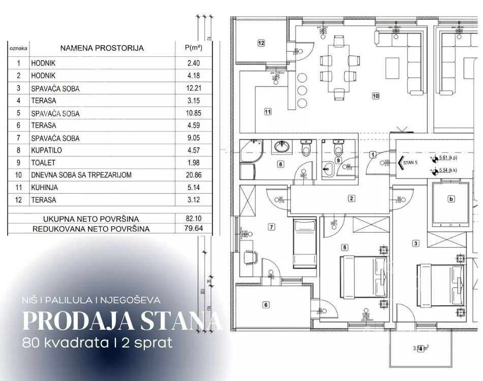 Agencija Moj Agent posreduje u prodaji četvorosobnog stana u izgradnji od 80 kvadrata na 2. spratu, u neposrednoj blizini Njegoševe ulice, po ceni od 144 000 evra sa uračunatim PDV-om.