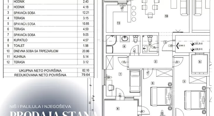 Četvorosoban stan na prodaju, Njegoševa 22, 144.000€, 80m²