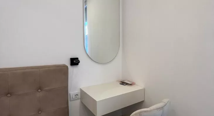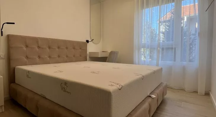 - Opremljenost: Namešteno - internet, TV, klima, veš mašina, kuhinjski elementi, sudo mašina, frižider, zamrzivač, šporet, rerna, ležaj, plakar, ugradni plakar