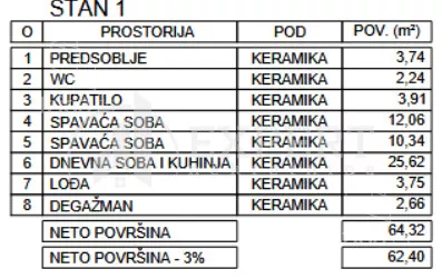 Dvoiposoban stan na prodaju, Zetska, 106.780€, 64m²
