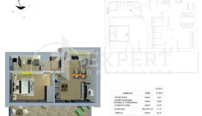 - Prostorije: kupatilo, terasa