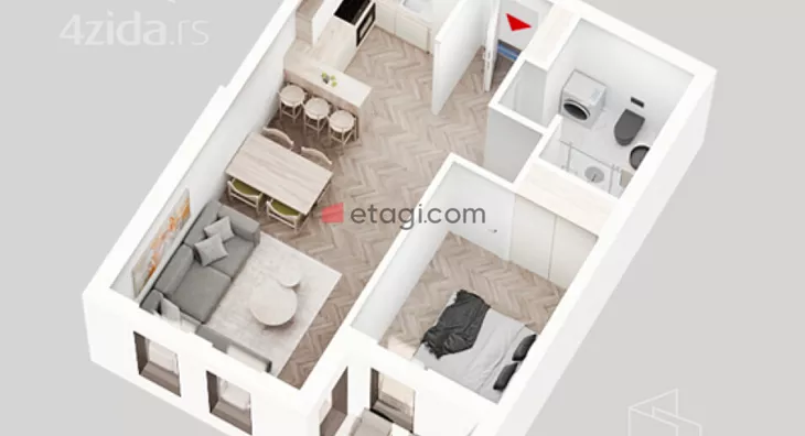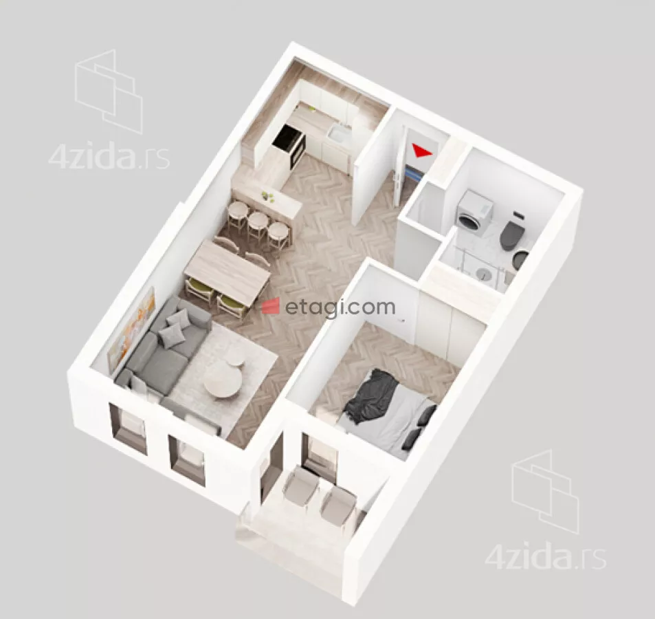 Na prodaju stan u novogradnji u naselju Palilula, u stambenom objektu Po+P+5. Projektovana površina stanova je od 47m2 do 136m2. Zgrada se radi po visokim i moderniim standardima. Na podovima se postavlja tarket prve klase, španska keramika visokog kvaliteta, PVC stolarija sa aluminijumskim roletnama, walk-in tuševi, etažno grejanje. Zgrada ima moderni bešumni lift. Obezbeđena je video nadzorom. Upotrebljavaju se najsavremeniji materijali i tehnike gradnje. Stanovi su projektovani da budu komforni, lepo osvetljeni i funkcionalni za porodičan život.