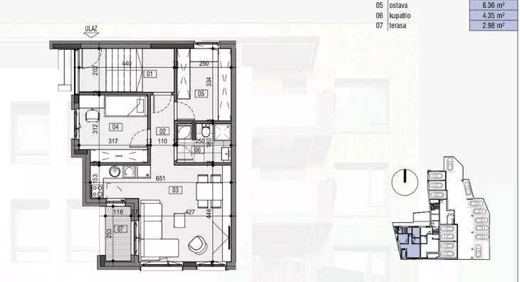 U prilici smo da vam ponudimo manji trosoban stan u izgradnji u objektu koji se gradi u neposrednoj blizini Palilulske rampe. Stan se sastoji od hodnika, dnevnog boravka sa trpezarijom i odvojenom kuhinjom, dve spavaće sobe, kupatila i zasebnog toaleta, i terase. Početak radova je 10.09.2025.godine. Rok za useljenje je 24 meseca. Cena iznosi 2200 eura sa pdv-om. U ponudi pored ovog stana ima više drugih stanova različitih struktura i kvadratura od manjih jednoiposobnih pa sve do velikih petosobnih stanova.