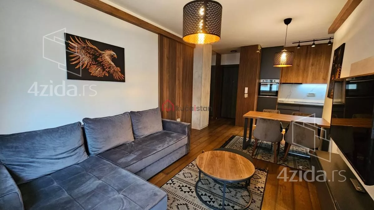 Stan se prodaje kompletno namešten - nameštaj je nov, nekorišćen. Enterijer je pažljivo dizajniran u savremenom duhu – dominiraju čiste linije, neutralne boje, kvalitetni materijali i promišljeni detalji. Opremljen je najnovijom tehnikom, ugradnim kuhinjskim elementima, modernim rasvetnim rešenjima i plakarima po meri!