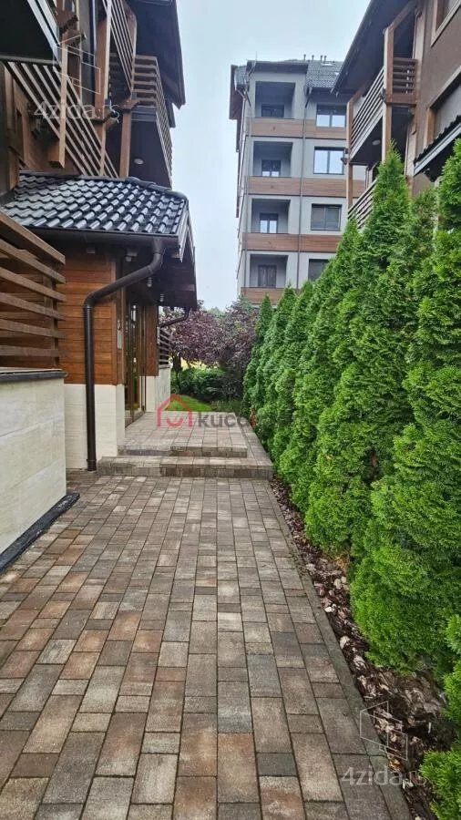- Gradnja je izvedena sa armirano-betonskom konstrukcijom, odličnom termo i zvučnom izolacijom, a fasade kombinuju prirodne materijale i dekorativni kamen, čuvajući autentičan zlatiborski stil.