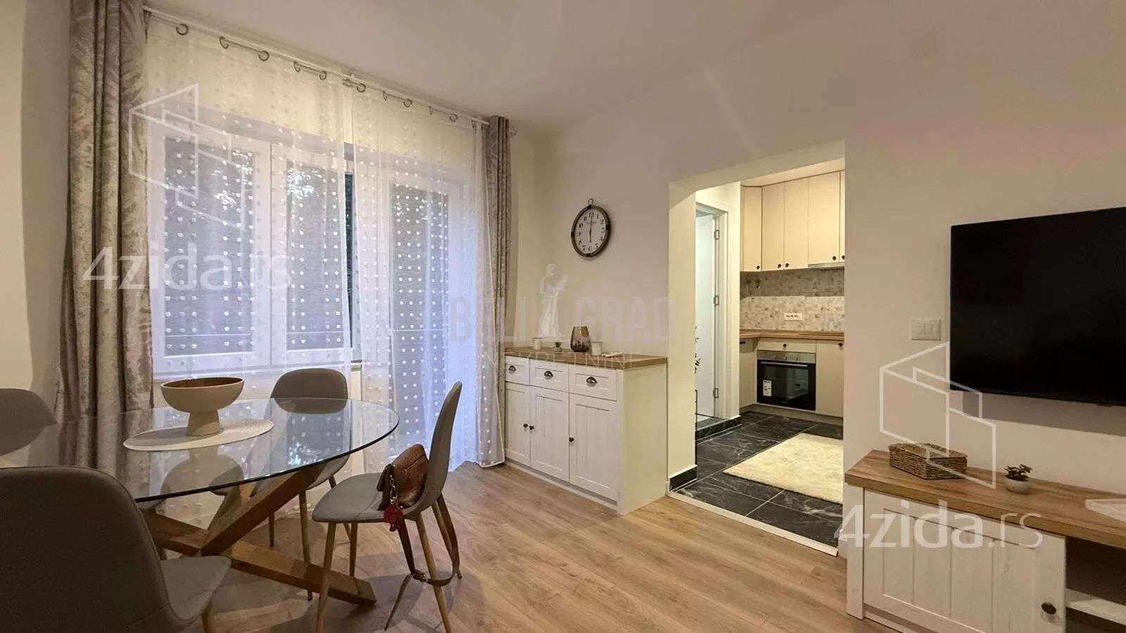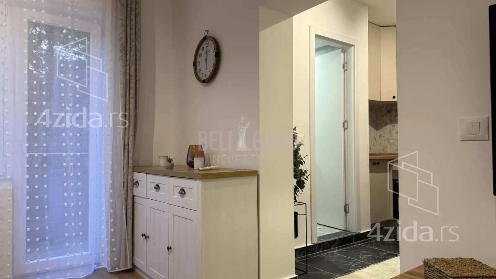 Na prodaju je jednosoban stan na jednoj od najtraženijih lokacija na Novom Beogradu u održavanoj zgradi na idealnom drugom spratu. Stan je kompletno renoviran (elektro instalacije, vodovod, završni radovi, stolarija-unutrašnja i spoljna), i kompletno namešten i opremljen novom tehnikom i novim nameštajem uz koji ide i garancija. U zgadi je ugradjen nov lift, takodje poseduje video nadzor, a u stanu ima internet, klima, televizor. Stan je uknjižen na 21m2 (mereno 30m2), moguća je kupovina na kredit. Stan je jednostrano orjentisan i gleda ka parku. Prostorije: ulazni hodnik, kuhinja, kupatilo , dnevna soba sa trpezarijom i terasa. Agencijska provizija 2%.