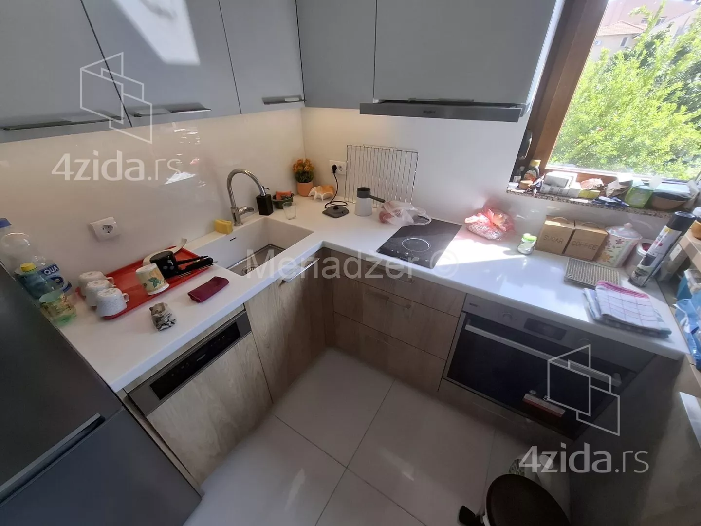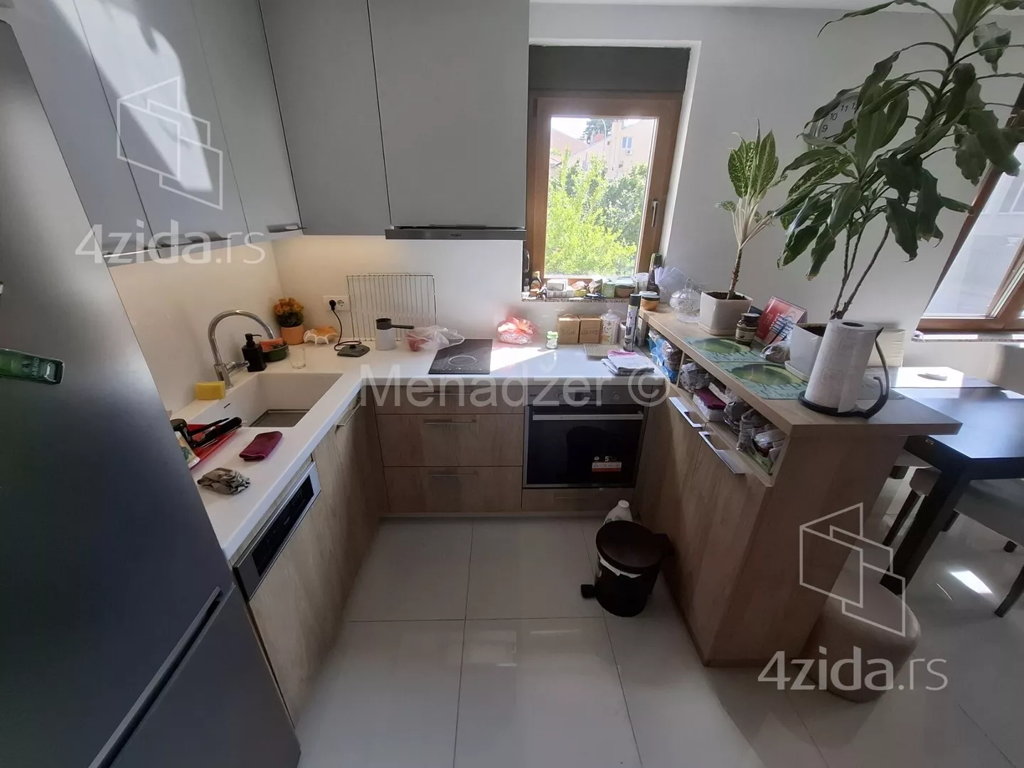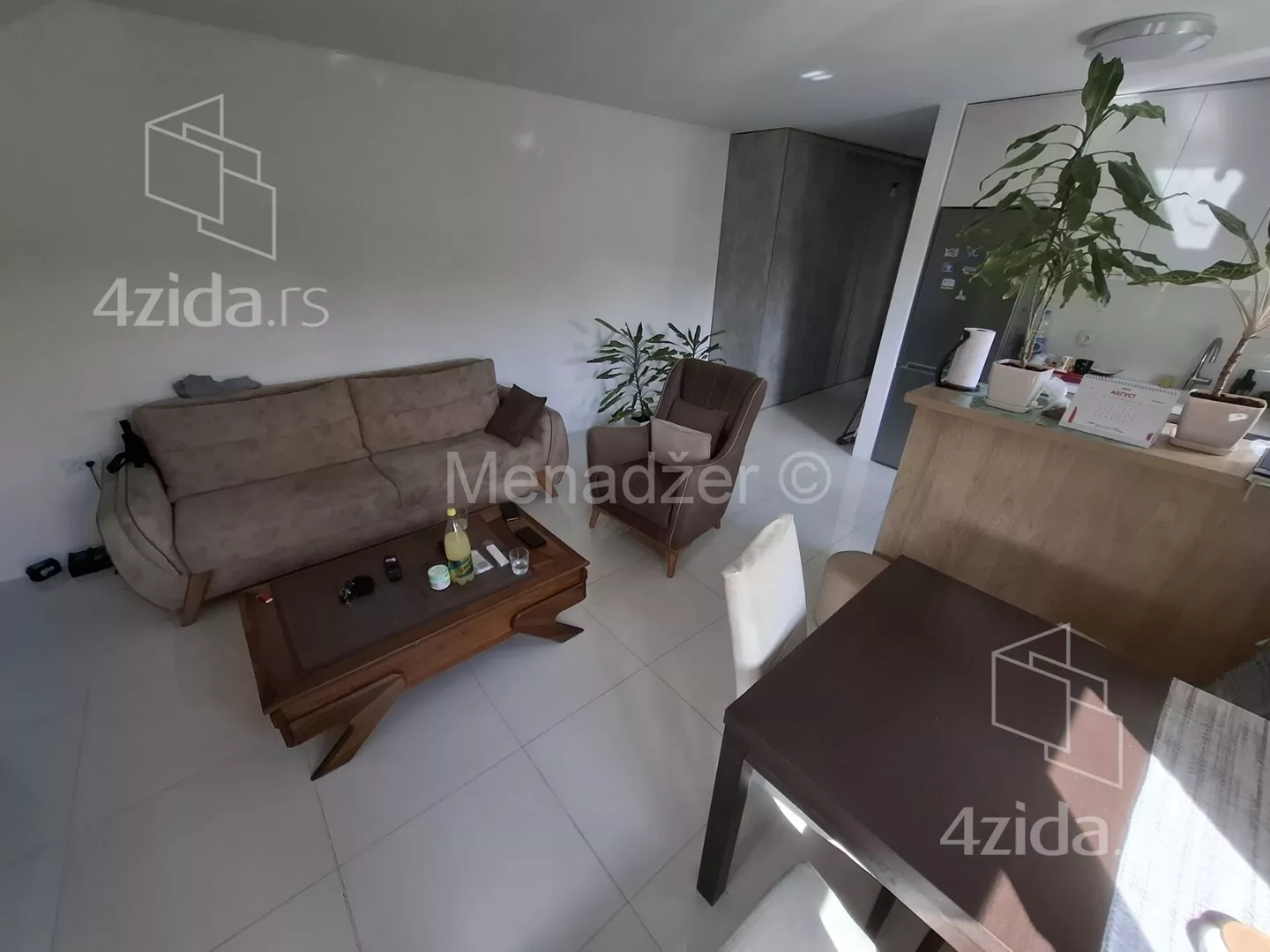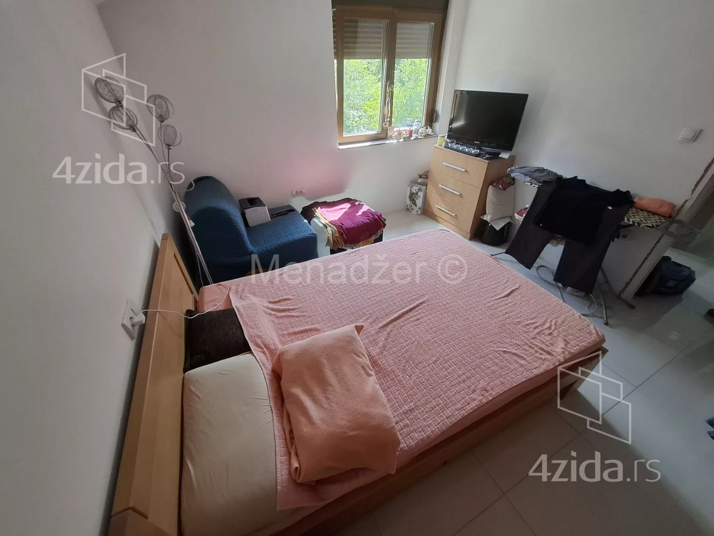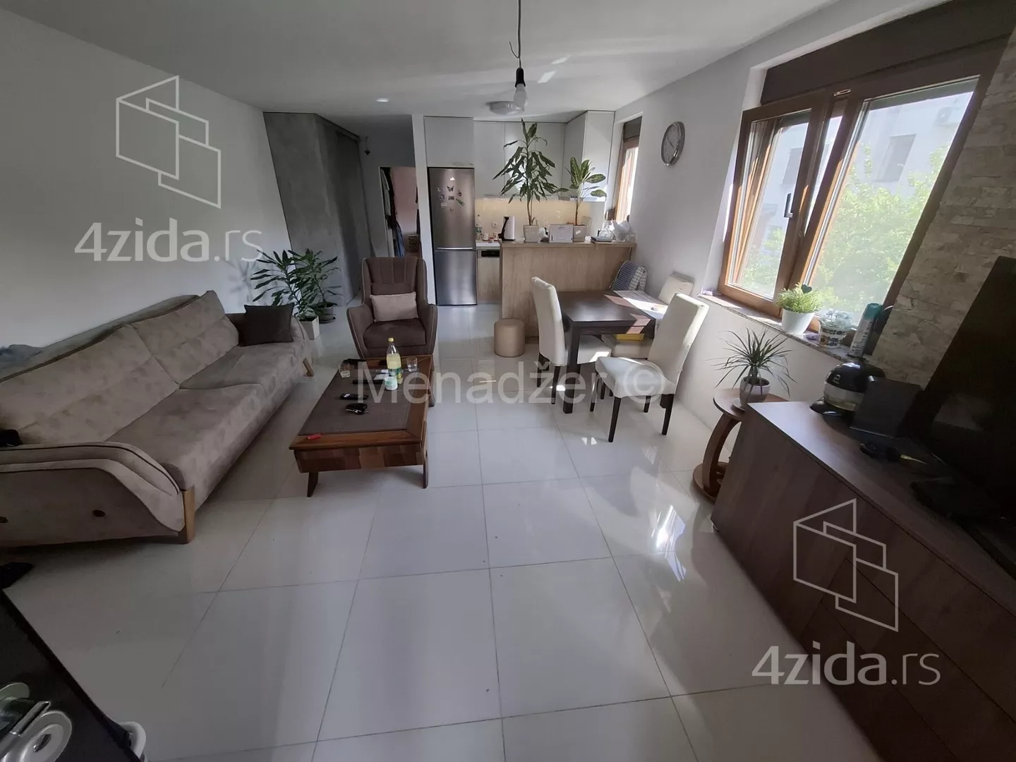Garaza ima resenje o ozakonjenju. Stan je na prvom spratu i ima 48m2 i uknjizen je. Dvosoban po strukturi. Odvojenim stepenicama se ide na gornji nivo gde se nalazi tavnski prostor u grubim radovima gde je započet proces adaptacije u jednosoban stan. Stan na prvom spratu je nedavno lux komplet renoviran. Struja, voda, kupatilo, podovi, spoljna vrhunska stolarija alu-drvo, ugradna lux kuhinja koja ostaje u stanu. U stanu ostaju jos 2 ugradna americka plakara i kupatilski namestaj. Sve je novo. Stan od prostorija ima antre, odakle se ulazi u veliki dnevni boravak sa trpezarijom, kuhinjom, odvojenim sankom, radjenom po meri, degazman gde se nalazi veliki americki plakar, kupatilo i ulazak u spavacu sobu. Stan je osuncan, svetao i jako prijatan za boravak. Grejanje klima, i postoji prikljucak na gas.