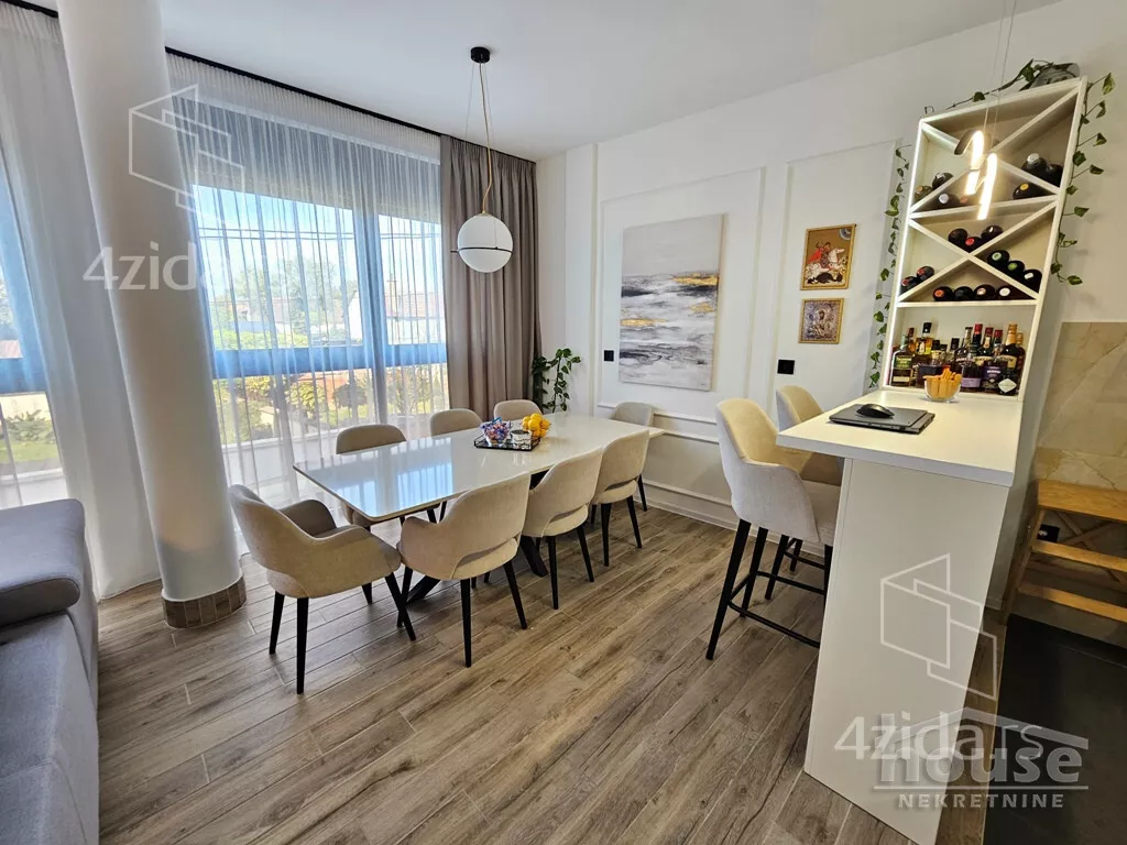 Luksuzan četvorosoban stan u mirnom delu Petrovaradina, bliže gradu, 93m2. U cenu je uključena i velika garaža za dva automobila, a prodaje se potpuno namešten, novo i pod garancijom! +++ Agencijska oznaka 1064680. CENA 320000e + agencijska provizija od 3%. Prodaje se kompletno namešten, moderan stan u mirnom delu Petrovaradina, idealan za porodičan život – u neposrednoj blizini osnovne škole i vrtića, a svega 5 do 10 minuta vožnje od centra grada. U cenu su uključeni i garaža površine čak 34 m², gde staju dva vozila, kao i ostava od 7 m² u dvorištu. Stan se nalazi u novijoj zgradi sa biciklanom vrhunskog kvaliteta. Prostire se na prostranih 93 m², sa tri spavaće sobe koje su orijentisane ka mirnom dvorištu, dva kupatila i velikim open space prostorom u kojem su dnevna soba, kuhinja i trpezarija. Kuhinja je rađena od medijapana, trpezarijski sto od kvarca, a plafoni su visine 288 cm, što dodatno doprinosi osećaju prostranosti. Stan ima podno grejanje, centralni usisivač, električne roletne, aluminijumsku stolariju i ekonomičan Ariston bojler od 80 litara. Udobnost, funkcionalnost i mirno porodično okruženje čine ovaj stan izuzetnom prilikom. Kontakt telefon 064... (prikaži broj telefona) Nikola