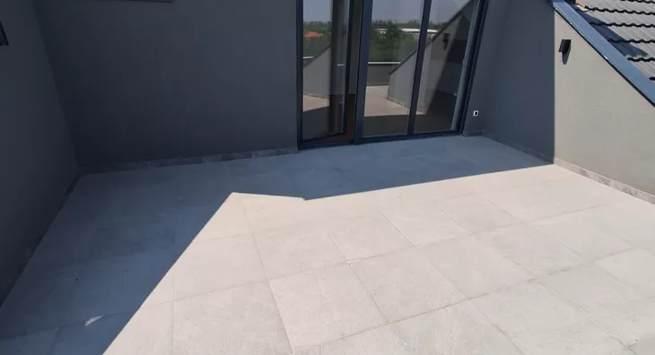 Porodičan trosoban stan od 83 m2 sa velikim i komfornim dnevnim boravkom sa kuhinjom i trpezarijom i trostranim tarasnim vratima koja vode na ogromnu terasu od preko 25 m2 (polovina je GRATIS!), dve velike spavaće sobe, kupatilo i poseban prostor za vešeraj. I kuhinja i kupatilo imaju svoju prirodnu ventilaciju.