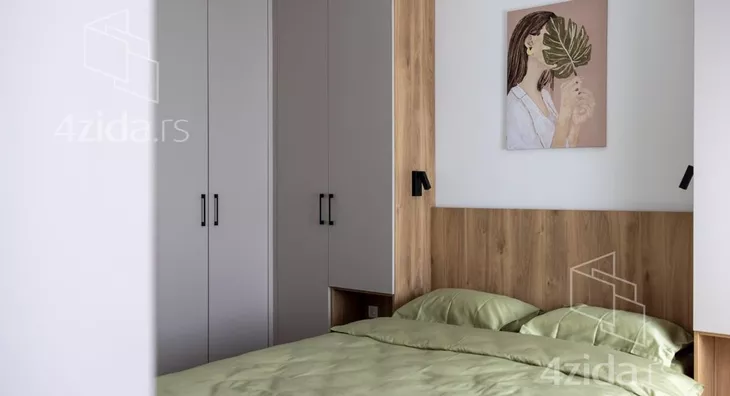 - Opremljenost: Namešteno - internet, interfon, TV, klima, veš mašina, kuhinjski elementi, sudo mašina, frižider, zamrzivač, mikrotalasna rerna, šporet, rerna, ležaj, plakar, ugradni plakar
