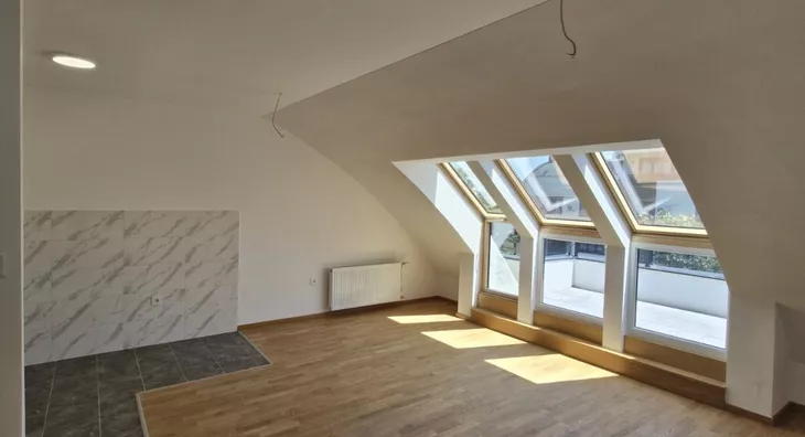 The apartment is beautifully designed, located in a high-quality building. In addition to standard rooms, it features a separate toilet, a storage/walk-in closet, two rooftop terraces, and an additional storage space of about 5 m² on the floor below. There is also an option to purchase a parking space in the courtyard for an additional €5,000.