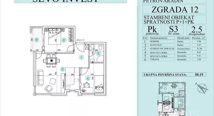 Stan,NOVI SAD,PETROVARADIN,kv: 50.19, € 108000, ID: 1043281