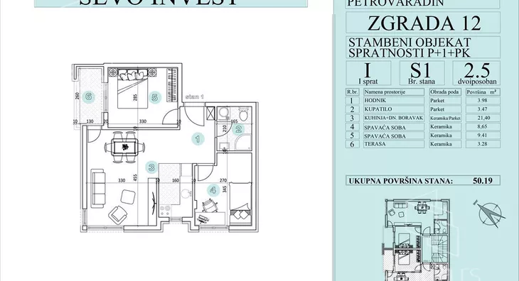 Stan,NOVI SAD,PETROVARADIN,kv: 50.19, € 108000, ID: 1043279
