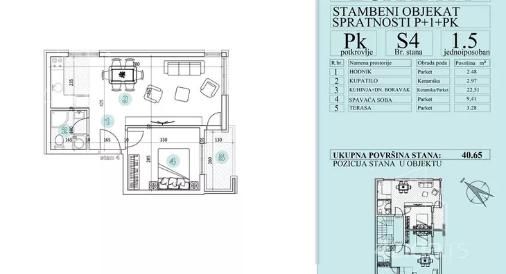 Jednoiposoban stan na prodaju, Petrovaradin, 81.650€, 40m²