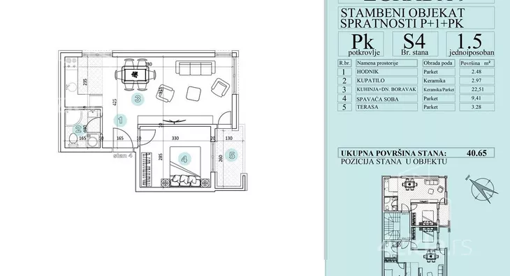 Jednoiposoban stan na prodaju, Petrovaradin, 81.650€, 40m²