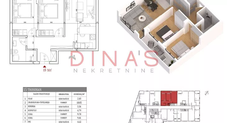 Trosoban stan u izgradnji od pouzdanog investitora u objektu PO+1+Pk. Grejanje je na gas na kalorimetre. Rok izgradnje mart 2027. godine. U navedenu cenu je uračunat PDV i posrednička naknada od 3%. Mogućnost kupovne garažnog mesta. Više informacija na 063... (prikaži broj telefona)